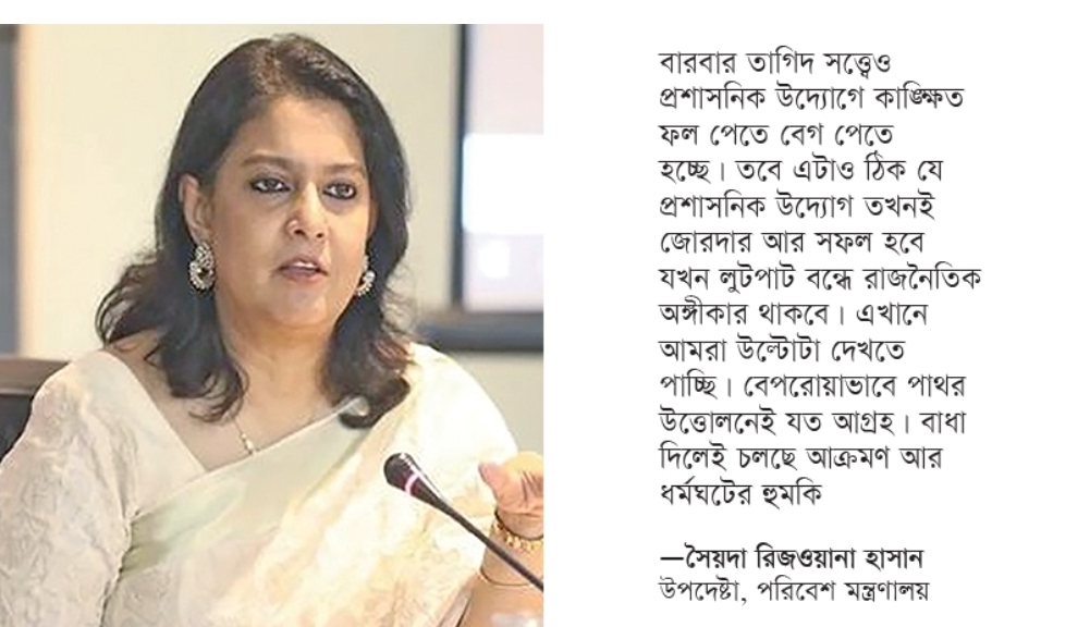 গত বছরের সরকার পরিবর্তনের পর থেকেই সাদাপাথর ও জাফলংয়ে ফের শুরু হয় পাথর উত্তোলন ও পাচার। পরিবেশকর্মীদের অভিযোগ, স্থানীয় প্রশাসন ও রাজনৈতিক নেতাদের আশীর্বাদেই এই লুটপাট হচ্ছে। সিলেটের অন্যতম পর্যটন কেন্দ্র সাদাপাথর এখনো পরিবেশ সংকটাপন্ন এলাকা (ইসিএ) হিসেবে ঘোষিত না হওয়ায় পরিবেশ অধিদপ্তর সরাসরি আইন প্রয়োগ করতে পারছে না। তবে তারা স্থানীয় প্রশাসনকে অভিযানে সহায়তা দিচ্ছে বলে জানিয়েছেন সংশ্লিষ্ট কর্মকর্তারা।